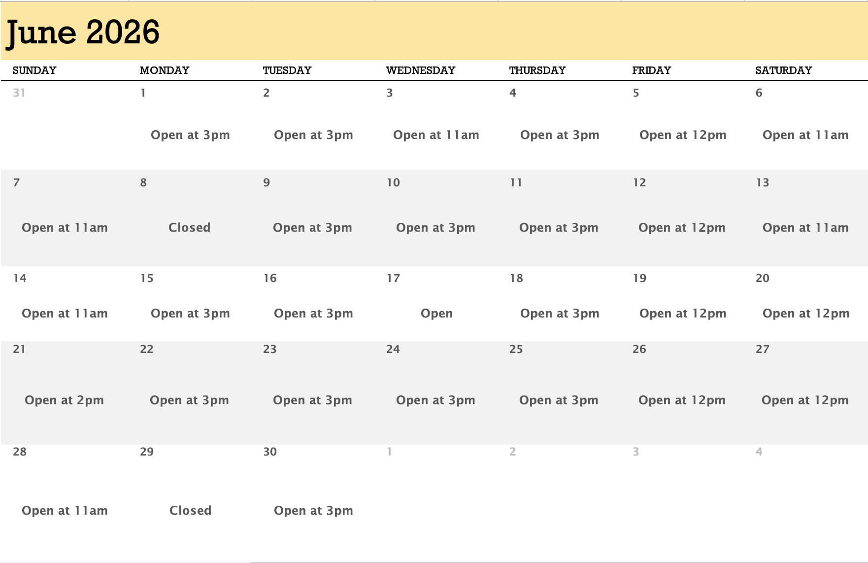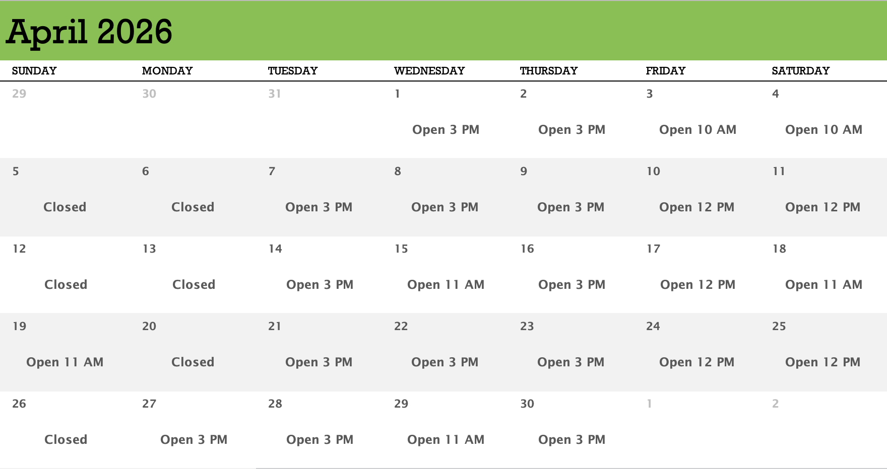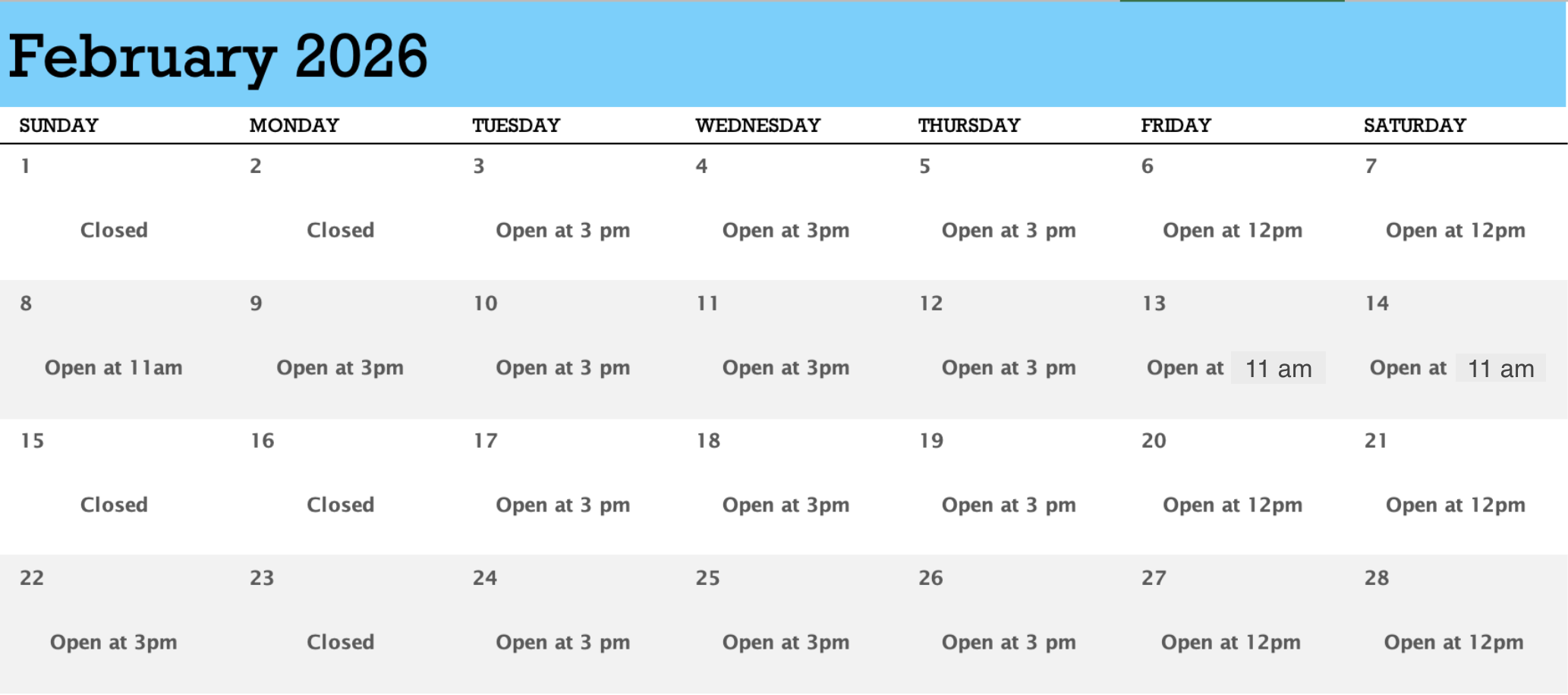 Hours of Operation: